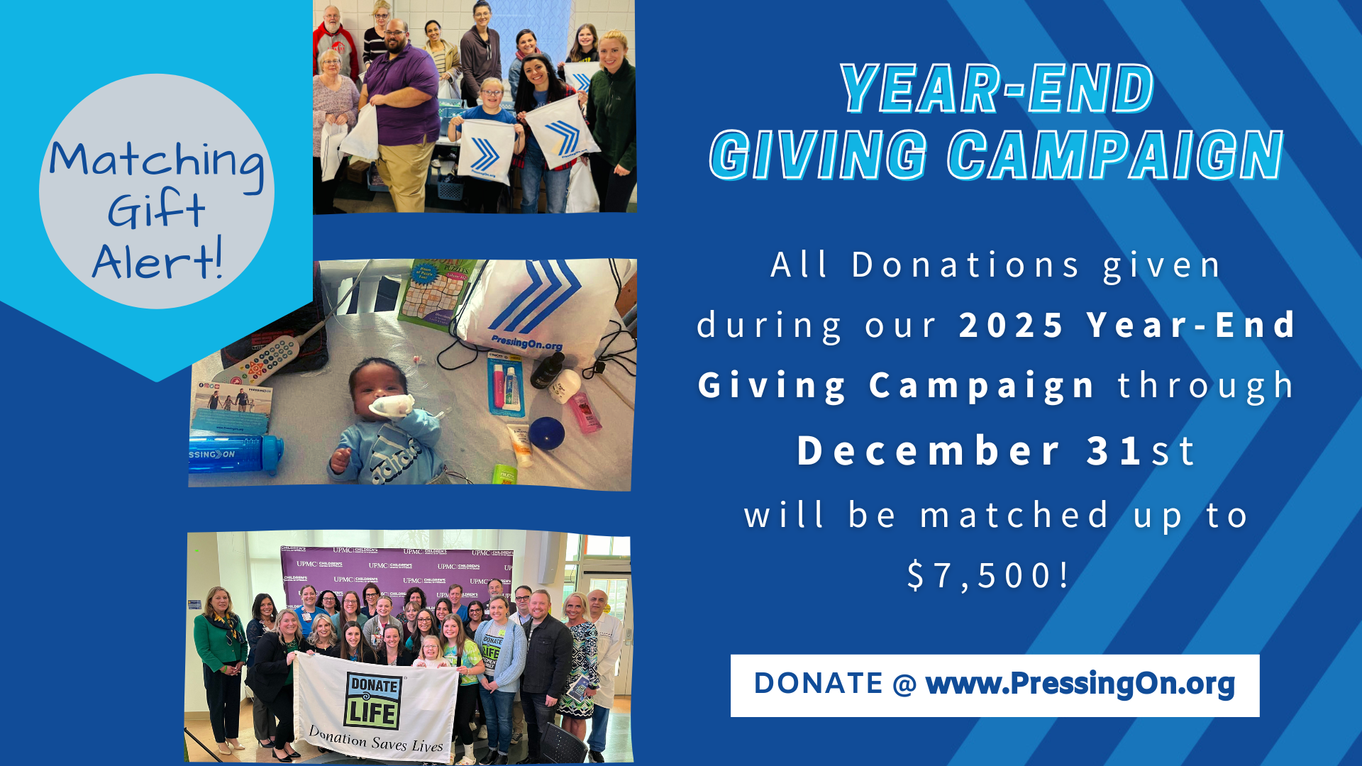 Let us keep you up to date each quarter on everything that’s happening with Pressing On through our e-mail newsletter. You’ll be the first to hear about our ongoing impact, upcoming events and exciting announcements!